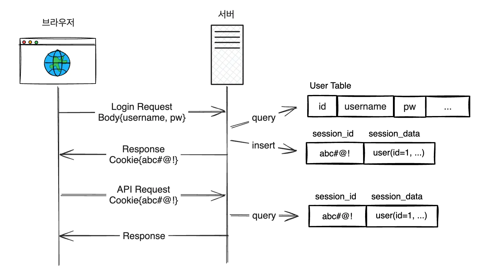 서버는 전달 받은 session id를 이용하여 저장 중인 세션 정보로 인증을 처리한다.