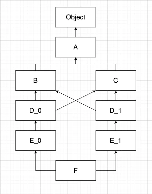 F ํด๋์ค์ MRO๋ฅผ ์์ฐจ์ ์ผ๋ก ์ถ๋ ฅํด๋ณด๋ฉด ๋ค์๊ณผ ๊ฐ์ต๋๋ค: